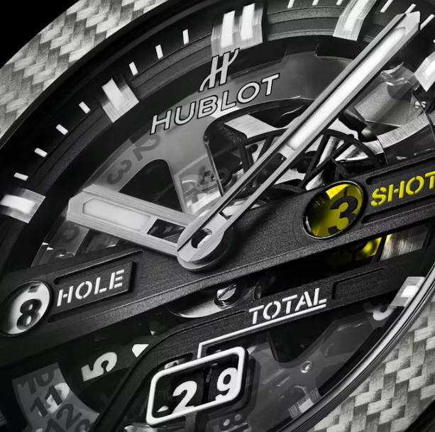 This is an usual watch with a very specific purpose. Created in partnership with Dustin Johnson, the number one ranked golfer in the world, the buy replica Hublot Big Bang Unico Golf watches has a newly-developed complication that allows the wearer to keep score of his or her golf game on the fly. On the right side of the 45mm case are two buttons – one adds a stroke to the player’s score, while the second advances the game one hole. Down at six o’clock, a running total of the player’s 18-hole score is kept with a pair of discs. At eight o’clock is a tee-shaped pusher that resets the whole thing back to zero.